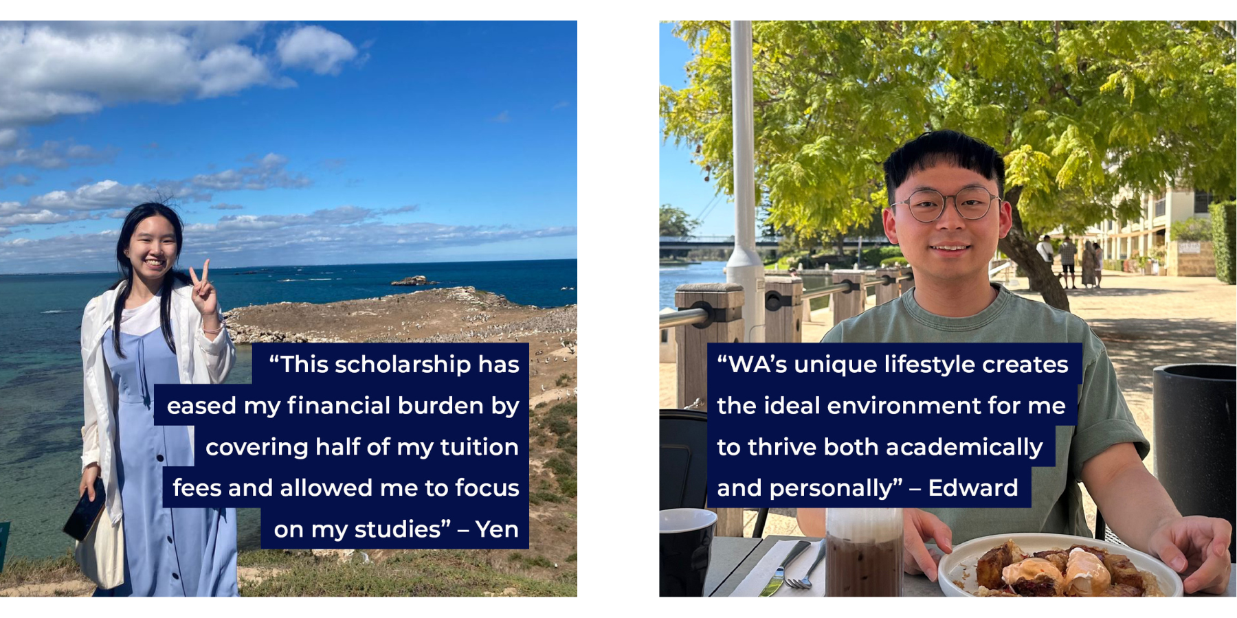 Below are two students who received the $50,000 The Western Australian Premier's University Scholarship. Check out what they have to say.